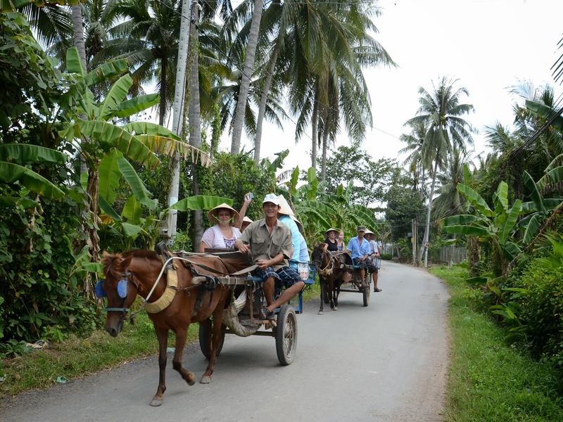 12h00: đoàn đi xe ngựa đến Nhà hàng dùng cơm trưa tại nhà hàng. Sau đó đoàn đi đò chèo trên rạch nhỏra thuyền lớn về lại bến Tàu 30/4. Khởi hành về lại HCM.