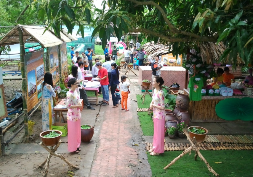 11h30: vào Nhà hàng tại Sa Đét dùng cơm với đặc sản vùng Sông nước mê kong. Tiếp tục đi Cao Lãnh, chinh phục Phà An Hoà và đến với KDL Sinh Thái Giáo Gồng. Với rừng tràm và những cánh đồng ngập nước mênh mông. Xem đoạn phim tư liệu giới thiệu về Khu du lịch, chinh phục đài quan sát với độ cao 18m, du khách sẽ được ngắm toàn cảnh Khu du lịch sinh thái Gáo Giồng – bạt ngàn là tràm với tràm. (Đài quan sát với độ cao 18m). Tự do tham gia thưởng thức “chợ quê” trong KDL ….